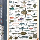 Fedezze fel a víz alatti világ szépségeit ezzel a kirakóval, amely a legismertebb tengeri halfajokat ábrázolja. Minden halról részletes leírás található, beleértve a nevét, tömegét és hosszát, így a kirakó nemcsak szórakoztató, hanem oktató jellegű tevékenység is.
