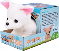 Fedezd fel Sisit – az interaktív plüss kutyust, amely minden kis állatbarátnak örömet szerez. Puhán krémszínű bundája, rózsaszín fülecskéi és bájos arckifejezése miatt Sisi ideális ölelgetnivaló társ. Bekapcsolás után érintésre reagál, mozgatja a fejét, csóválja a farkát és élethű hangokat ad ki.