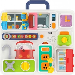 Az interaktív konyhai tábla Huanger funkcióival, mint a nyitható hűtőszekrény, csapokkal felszerelt tűzhely, időzítővel ellátott mikrohullámú sütő és az eszközök csatlakoztatására szolgáló aljzatok, korlátlan szórakozást nyújt és serkentik a gyerekek érzéki fejlődését. A játék lehetővé teszi, hogy a gyerekek valósághű szerepjátékokat játszanak, mint a termékek mosása, hűtőben történő tárolása és mikrohullámú sütőben történő melegítése.