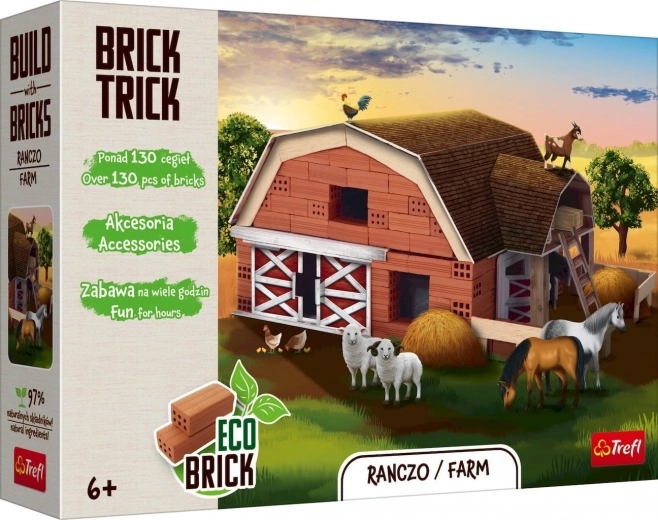A Brick Trick Farma L egy építőkészlet, amellyel könnyedén felépíthetsz egy farmot természetes anyagokból. A készlet több mint 150 darab természetes agyagtéglát, fa lapokat, ragasztót és díszítő elemeket tartalmaz, melyek segítségével lépésről lépésre, a mellékelt képes útmutató alapján gyönyörű épületet hozhatsz létre.