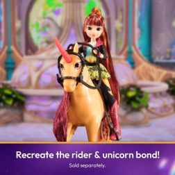 A Lángoló levehető hevederekkel és nyeregkával rendelkezik babák számára, ami további játék lehetőségeket biztosít. Finom fejmozdulatával életre kelthetjük személyiségét, és újraélhetjük az unikornis és lovasa, Valentina közötti varázslatos élményt.