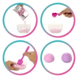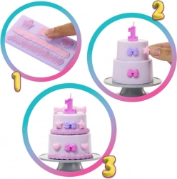 A készlet része a varázslatos megjelenésváltás is – meleg vagy hideg vízzel szórakoztató „party” részletek bukkannak elő. A kreatív részt gyurma/massza és formák egészítik ki a kétszintes torta díszítéséhez. Mindez látványos ajándékstílusban, amely egyenesen a meglepetések kibontására csábít.