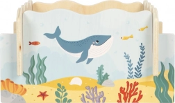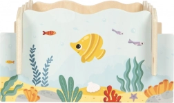 - 2 mágneses fa horgászbot, 10 tengeri élőlény, 4 becsúsztatható oldallap (játéktér)