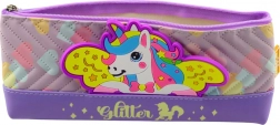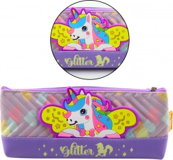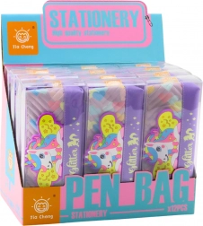 Lila tolltartó unikornis motívummal, ideális iskolai felszerelések tárolására. Puha, strapabíró és biztonságos anyag, megfelel a CE és EN71 szabványoknak.