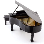 Részletes modell valósághű elemekkel, mint például a kiemelkedő billentyűk és az ívelt húrok.