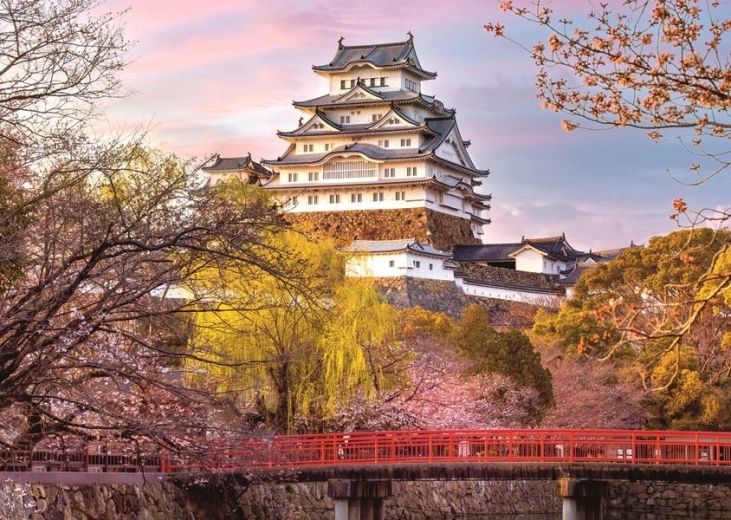 Puzzle Fenséges várak és kastélyok: Himeji, Japán tökéletes választás a kirakók és a japán építészet szerelmeseinek. Az 1000 darabos kirakó a világ egyik legnagyszerűbb várának varázsát és szépségét ragadja meg.