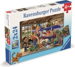 Ez a dupla gyerekpuzzle-csomag egyesíti a tanulást és a szórakozást. A gyerekek két, részletekben gazdag jelenetet rakhatnak ki: a műhelyben modellrepülő készül, a fűtőházban pedig gőzmozdonyt gondoznak. A Ravensburger minőségi darabjai tökéletesen illeszkednek, tartósak, és a kis gyerekkezekhez igazodnak.
