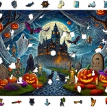 A WOODEN CITY fa kirakó halloweeni kastély témával egyedülálló kirakóélményt kínál. Minden elem precízen, lézerrel van kivágva, egy részük különleges állatformájú, és önmagában is megáll, mint apró figurák. A változatos formák miatt az összeállítás nehezebb, ugyanakkor még szórakoztatóbb.