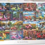 Élvezze a nagyobb kihívást jelentő kirakást a 16 ikonikus robogót felvonultató motívummal. Az egyedi stancolásnak köszönhetően, amely nem követi a hagyományos rácsot, a darabok rendhagyó formájúak, így minden illeszkedés még kielégítőbb.