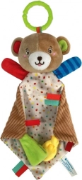 Az alvóka mackó ideális első barát újszülötteknek és totyogóknak. A puha anyag, élénk színek és felfedezhető címkék támogatják a tapintás, látás és finommotorika fejlesztését. A szülő illatának átadásával segít a babának biztonságérzetet kialakítani alvás közben és utazáskor is.