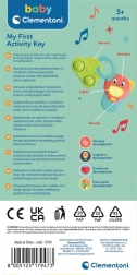 A BABY CLEMENTONI interaktív kulcsa szórakoztatja és fejleszti a babát életének első hónapjaiban. A kellemes dallamok és hangok fejlesztik a hallási érzékelést, míg a puha rágóka enyhülést nyújt a fogzás idején. A színes design és a biztonságos anyagok felfedezésre csábítanak és ösztönzik a finommotorikát.