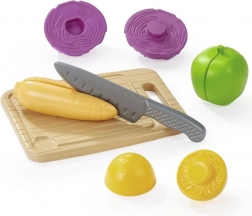 A szett különféle gyümölcsöket és zöldségeket tartalmaz a számtalan játékhoz.