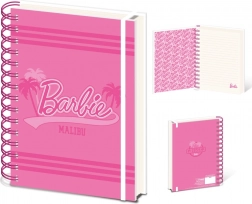 Stílusos, vonalas A5-ös gyűrűs jegyzetfüzet BARBIE (Malibu) licencelt motívummal – ideális iskolai jegyzetekhez, tervezéshez és kreatív ötletekhez. Praktikus gyűrűs kötés, kényelmes A5-ös formátum és vonzó design a mindennapi használathoz.