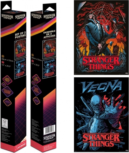 Ez a szett két különböző, 38x52 cm-es plakátot tartalmaz. Ideális a Stranger Things rajongóinak, akik stílusos motívumokkal szeretnék díszíteni szobájukat vagy irodájukat.