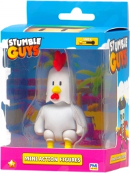 Mini figura fehér kakasról piros taréjjal és sárga lábakkal, színes dobozban, ideális minden Stumble Guys játékosnak.