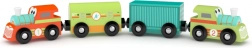 A kompakt fa kisautó‑készlet praktikus hengeres dobozban 4 strapabíró járművet kínál természetes fából, amelyek támogatják a finommotorika fejlődését, a kéz–szem koordinációt, valamint a gyermeki fantáziát és a szerepjátékot.
