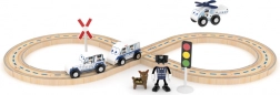 A csomag tartalmaz síneket és 4 rendőrségi járművet, melyek tetszés szerint kombinálhatók és tematikus történetekbe illeszthetők. A szett kompatibilis a hagyományos fa vonatpályákkal, így további elemekkel bővíthető és nagyobb pályák építhetők.
