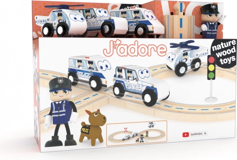 Fedezze fel a legkisebbeknek szánt szórakoztató és fejlesztő készletet: rendőrségi témájú fa vonatpálya a J’adore márkától. A környezetbarát, fenntartható fából készült szett tartalmaz síneket és 4 rendőrségi dizájnú járművet, fejleszti a fantáziát, a finommotorikát és a koordinációt. 3 éves kortól ajánlott.