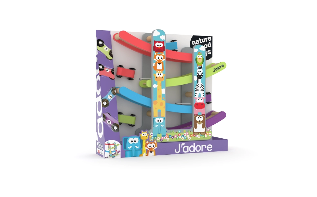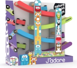 A J'adore autópálya kisautókkal tökéletes oktatójáték kis versenyzőknek. Környezetbarát, fenntartható fából készült, káros vegyi anyagok nélkül, ideális 18 hónapos kortól. A gyerekek színes autókkal versenyezhetnek, miközben játékos formában fejlesztik készségeiket.