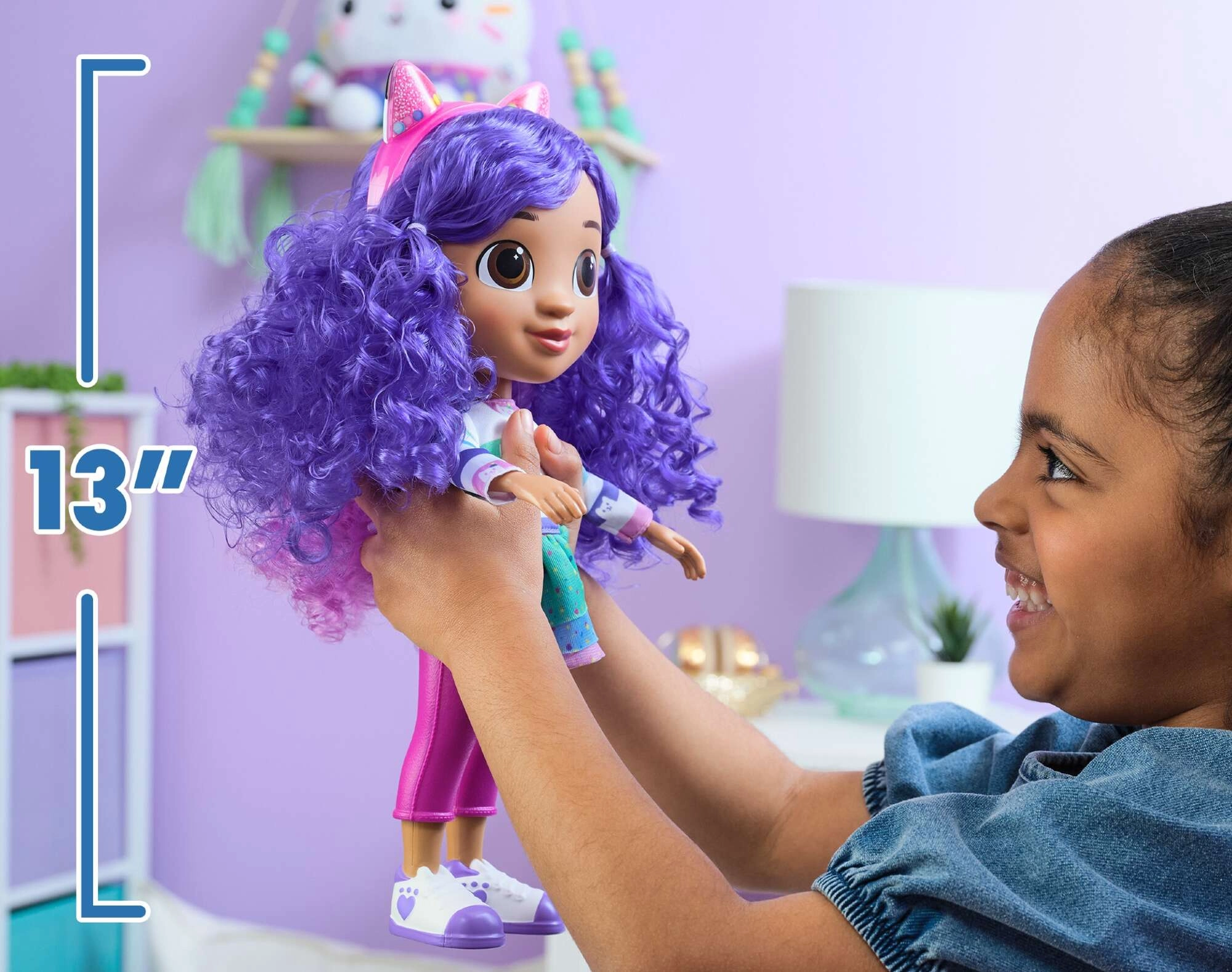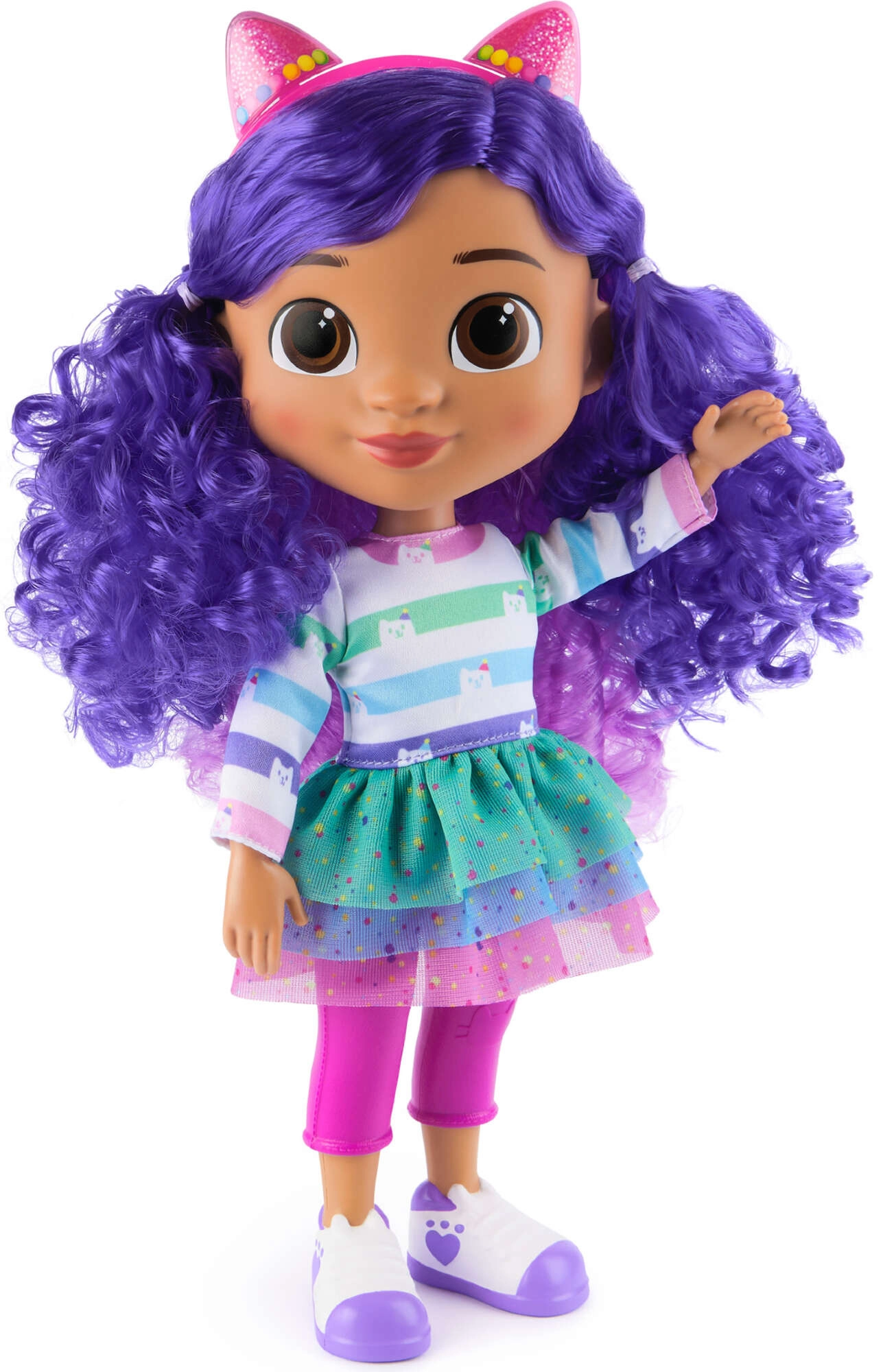 Gabby babája elhozza a gyerekeknek a Netflix-siker jól ismert hangulatát közvetlenül a gyerekszobába. A gyönyörű lila göndör haj, a party szett és a forgatható fülű macskás fejpánt megmozgatja a fantáziát és a stylist-ösztönt. A ízületes végtagoknak köszönhetően könnyű felállítani, leültetni és mókás pózokba rendezni.