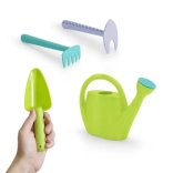A szerszámok élénk színekkel és egyszerű formákkal rendelkeznek, amelyek vonzóak a gyermekek számára és ösztönzik kreativitásukat a kertészkedésben.
