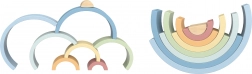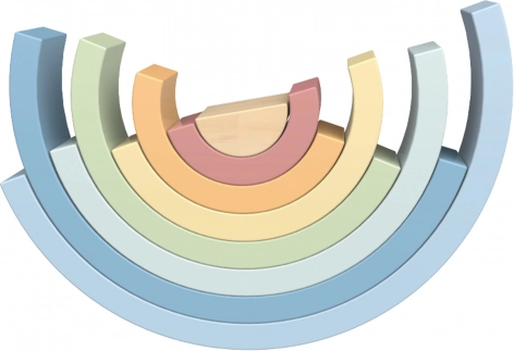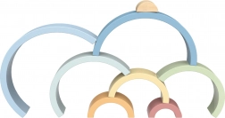 A készlet 8 félköríves elemet tartalmaz különböző méretekben és lágy színekben, amelyekből szivárvány, hidak, alagutak és fantáziadús építmények rakhatók ki.