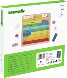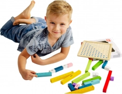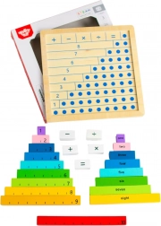 A játékot értékelni fogják a kezdők, akik már ismerik a számjegyeket, és gyakorolni szeretnék a számolást, összeadást és kivonást. A biztonságos, simára csiszolt fa és a nem mérgező festékek biztonságos játékot garantálnak. Játék után minden elem visszahelyezhető a táblába, így mindig minden egyben marad.