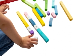 A gyerekek manipulálják az elemeket, színeket válogatnak és egyenleteket alkotnak – játékos formában fejlesztik a finommotorikát és a logikus gondolkodást.
