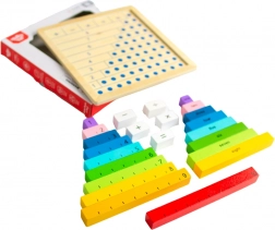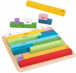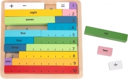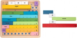 Ez az oktatójáték a színes fa elemeket számokkal és jelekkel egy praktikus fa táblával kombinálja. A gyerekek gyorsan megértik a számok közötti kapcsolatokat és az egyszerű aritmetikai műveleteket a példák összeállításán és a vizuális bemutatáson keresztül.