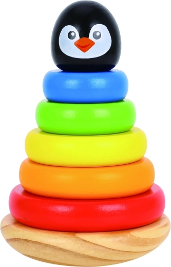 Ez a vidám színű, pingvin motívumos fa rakosgató torony ideális a kisebb gyerekeknek. A csomagban stabil talp csappal és több színes fa karika található, amelyekből a gyerekek saját tornyot építhetnek. A játék fejleszti az érzékelést, támogatja a koncentrációt, és örömet okoz minden sikeres összeállításnál.