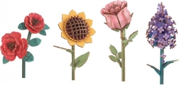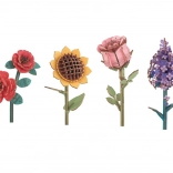 Négy egyedi virágmodell különböző színekkel és formákkal hangsúlyozza a finom kézművességet és az esztétikus megjelenést.