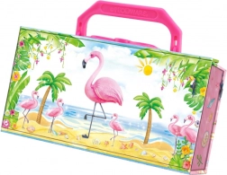 Tárold kincseidet ebben a gyönyörű bőrönd alakú ékszerdobozban Flamingó mintával. Ideális kiegészítő a kis hercegnőknek.
