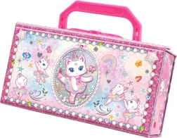 Bőrönd alakú ékszerdoboz csodálatos módja annak, hogy megőrizzük a gyermekek ékszereit és apróságait. Cica dizájn kölcsönöz az ékszerdoboznak olyan bájt, amit a kicsik imádnak.