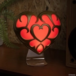 Lepd meg magad vagy szeretteidet ezzel az egyedi kiegészítővel a THE LEGEND OF ZELDA univerzumból. A szívmotívum arany részletekkel és az átlátszó talapzat elegáns, játékos hangulatot kölcsönöz az asztalnak vagy a polcnak. A vörös LED háttérvilágítás finom fényt teremt, ideális esti relaxáláshoz vagy a gyűjtemény kiemeléséhez.