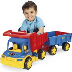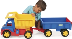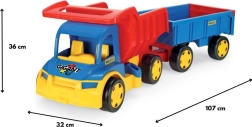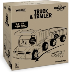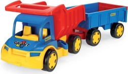 Óriási teherautó pótkocsival a Wader márkától nagy és tartós játék készlet gyerekeknek. Ez a színes készlet órákig szórakoztatja a gyerekeket, támogatja a fizikai koordinációt és a képzelőerőt.