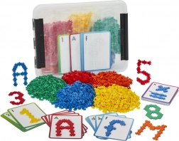 A nagy, oktatási célú Plus-Plus készlet praktikus dobozban 2400 darabot és 160 kétoldalas kártyát tartalmaz, 1:1 méretarányú betű- és számmintákkal. Része egy feladatfüzet is a játékos tanuláshoz, a finommotorika, a logika és a kreativitás fejlesztéséhez. Dániában készült ftalátmentes, újrahasznosított műanyagból, könnyen tisztítható, ideális óvodáknak, napköziknek és csoportoknak.