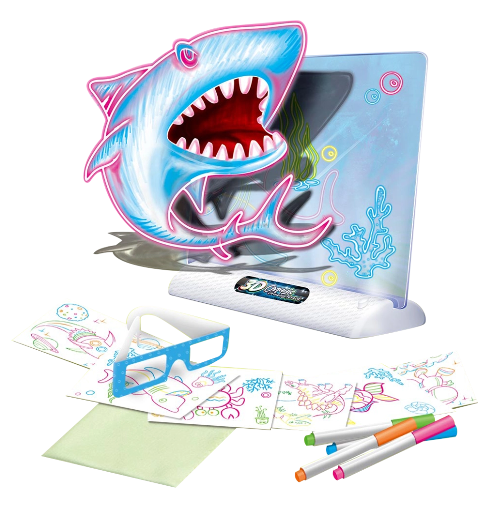 Éld át a háromdimenziós rajzolás varázsát ezzel a 3D rajztáblával! Hozz létre saját műalkotásokat, amelyek szó szerint életre kelnek 3D hatásban a speciális szemüveg segítségével.