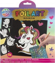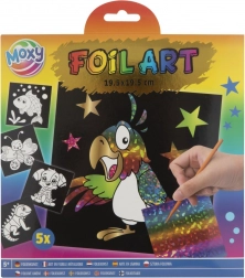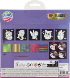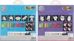 A készlet öt különböző képet tartalmaz öntapadós felületekkel a saját alkotásokhoz. A gyerekek 20 élénk fóliát használhatnak különböző mintákkal, amelyek korlátlan kreativitást tesznek lehetővé. Csak ki kell választani a kép egy részét, eltávolítani a védőréteget, és a kiválasztott fóliával díszíteni a ragadós felületet.