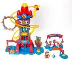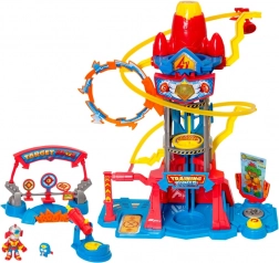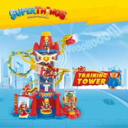 Merülj el a SuperThings varázslatos világában az Edzés Torony segítségével! Ez az izgalmas játékszett lehetőséget ad a Kazoom Kids figuráidnak, hogy Kaboom Citybe repüljenek és lenyűgöző akrobatikus mutatványokat hajtsanak végre.