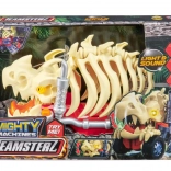 Indulj kalandos útra a különleges dinoszaurusz járművel, a Teamsterz-szel! Ez a triceratopsz alakú autó valósághű dinoszaurusz-hangokat, villogó sárga szemet és mozgás közben nyíló állkapcsot kínál. Emellett tárolórekesszel a kisautók számára is rendelkezik, így a gyerekek rögtön a dobozból kivéve élvezhetik az akciódús játékot – az elemek a csomag tartozékai.