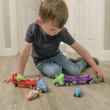 A szett két autót tartalmaz, azonos tematikus dizájnnal, ami növeli az interaktivitást és lehetőséget ad a gyerekeknek saját kalandok és történetek megalkotására. A tökéletes méretének köszönhetően ideális kis kézekbe.
