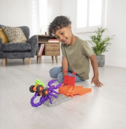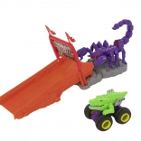 A készlet tartalmaz egy narancssárga rámpát és egy skorpió alakú lila akadályt, amelyek nagyszerű szórakozást és kalandot biztosítanak.