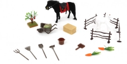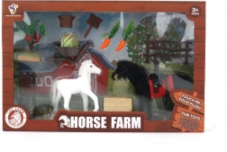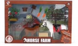 A készlet mindent tartalmaz, ami szükséges a saját lófarm kialakításához, beleértve a lófigurákat, farmeszközöket és zöldségeket.