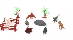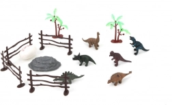 dinoszaurusz figurák, növények és egyéb kiegészítők (pl. fák, szikla, karám)