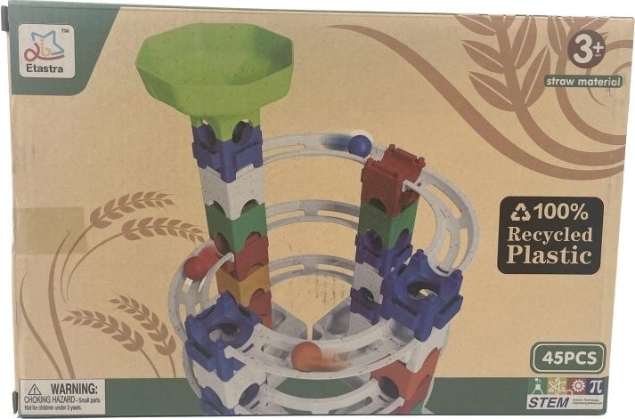 Építsd meg saját golyópályádat 45 elemből, és engedd, hogy a golyók száguldozzanak a kreatív útvonalakon! A játék fejleszti a kreativitást, a képzelőerőt és a finommotorikát. Természetes anyagokból és 100% újrahasznosított műanyagból készült.