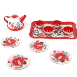 - Teáskanna fedővel, csészék, csészealjak, tányérok, szervírozó tálca