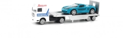 Ez az autómentő szállító a mellékelt sportkisautóval pillanatok alatt akciódús játékot kínál. A visszahúzós (pull‑back) mechanizmusnak köszönhetően elég hátrahúzni, elengedni, és figyelni, ahogy elindul a mentőakcióra. A fém elemek (die‑cast) és a gondos kidolgozás tartósságot és vonzó megjelenést biztosítanak.