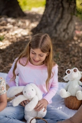 Puhából és kellemes plüssből készült, aminek köszönhetően ideális az öleléshez és bújáshoz ez a nyuszi.