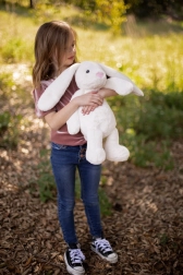 Nagyjából 41 cm-es méretével ez a nyuszi elég nagy, hogy vigaszt nyújtson, ugyanakkor kompakt is, hogy könnyen szállítható legyen.
