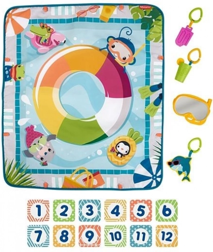 A Fisher Price medencemintás játszószőnyege szórakoztató hangulatot teremt a gyermekeknek az örömteli pillanatokhoz. Élénk színekkel és részletekkel van ellátva, amelyek úszómedence által keltett benyomást nyújtanak.